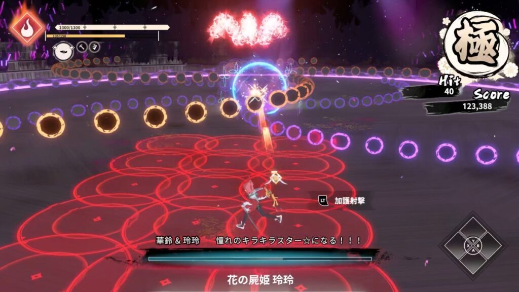 体力を一定以上削ると、青いバリアをまとって弾幕を放ちながらレーザー攻撃を仕掛けてきます。このレーザーは亜雅紗戦と同様に連続パリィが可能です。