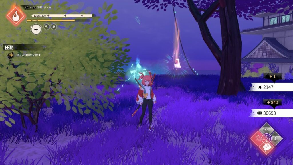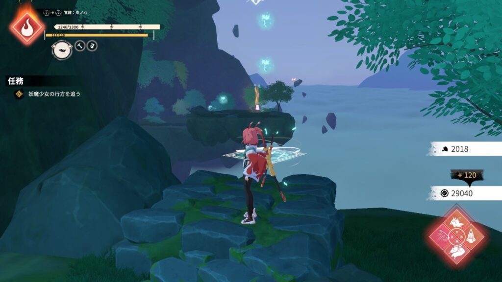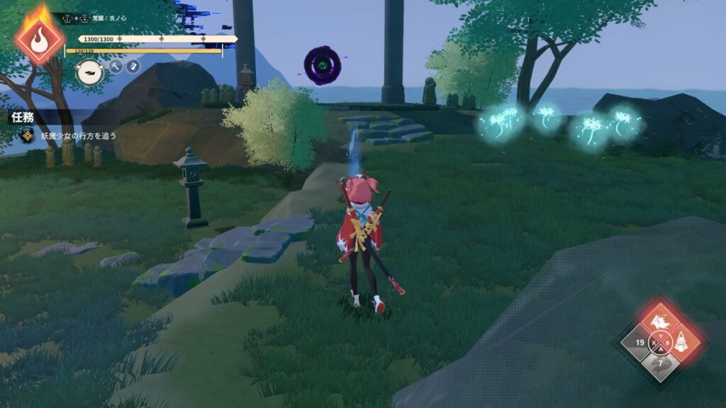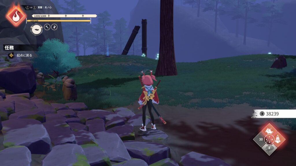 最初の雑魚敵戦後の先の木の近く