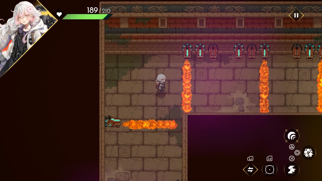 火のトラップは時間差で連続に炎を吐く。ダッシュを活用しながら、タイミングよく進もう。