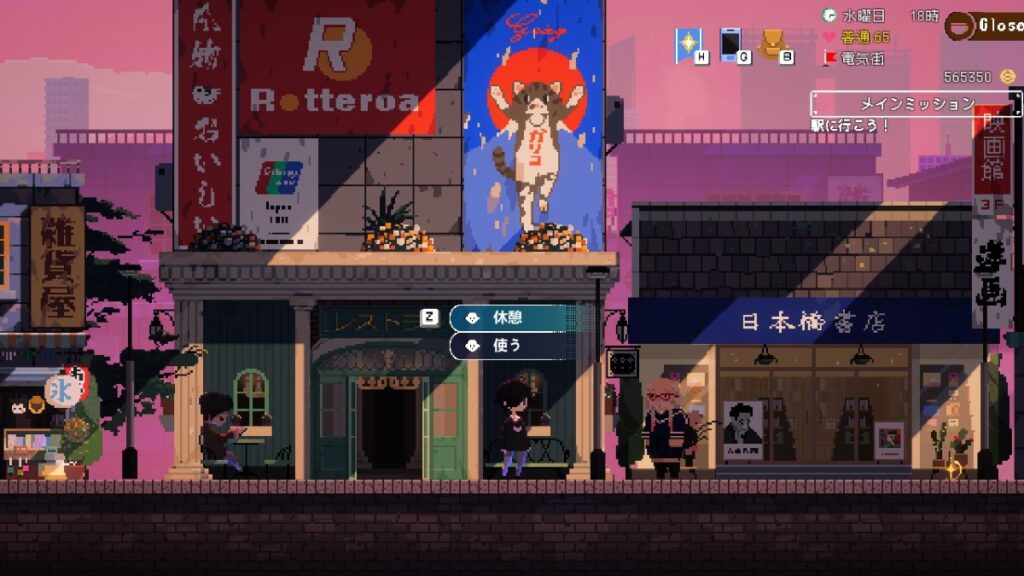 | アルバイト | 夜 | 1.ベンチで休憩して日付を変える。 2.ワクドでアルバイトをする。 |