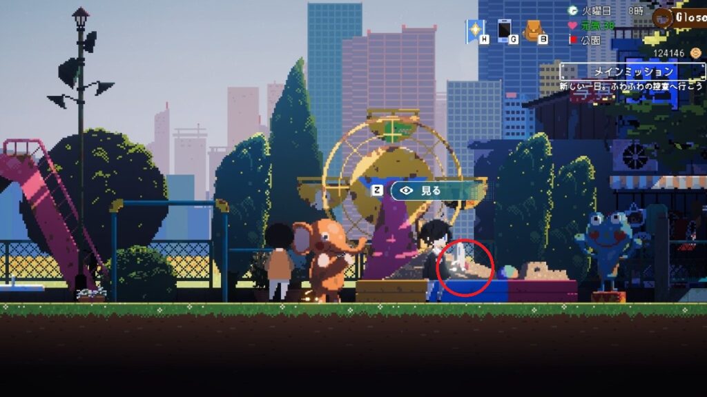 - 公園のシーソーで5回以上調べて、公園を出入りすると砂場が光る。その場所を調べると「銀のサウンドカード」を入手。
