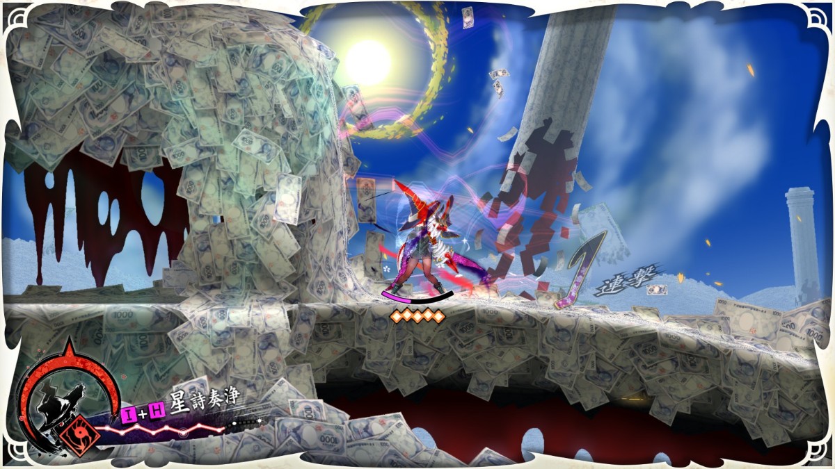 | 言霊:150 | エリア3 | 最後の札束を左上を登った先(3回目の雑魚敵戦の手前) ※色ナ星中でないと取得は不可能。 場所 |