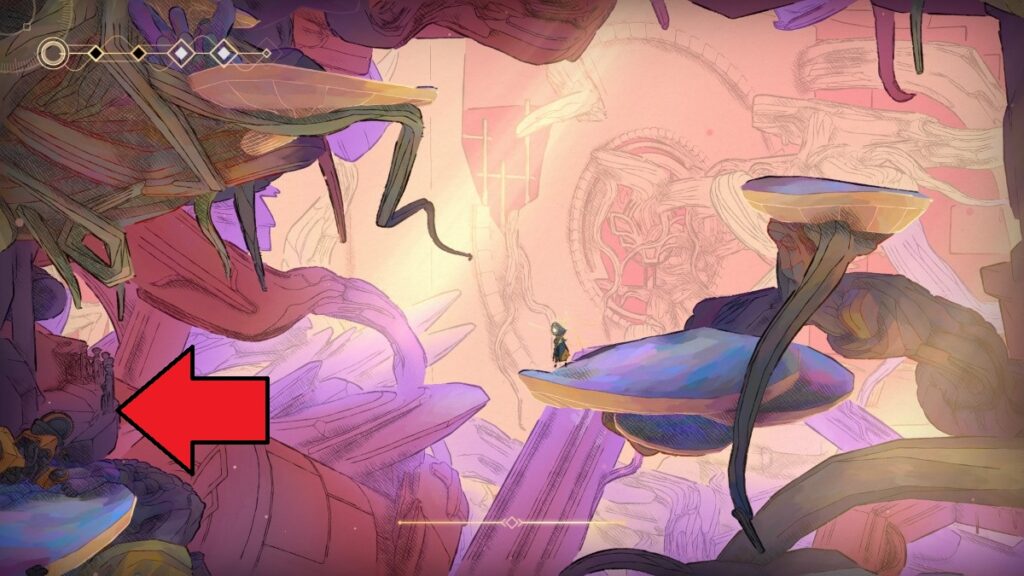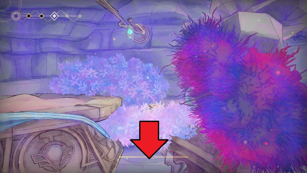 - 進んだ先の敵をヘヤピンで掴み崖を超えると「グリッジの癖跡」