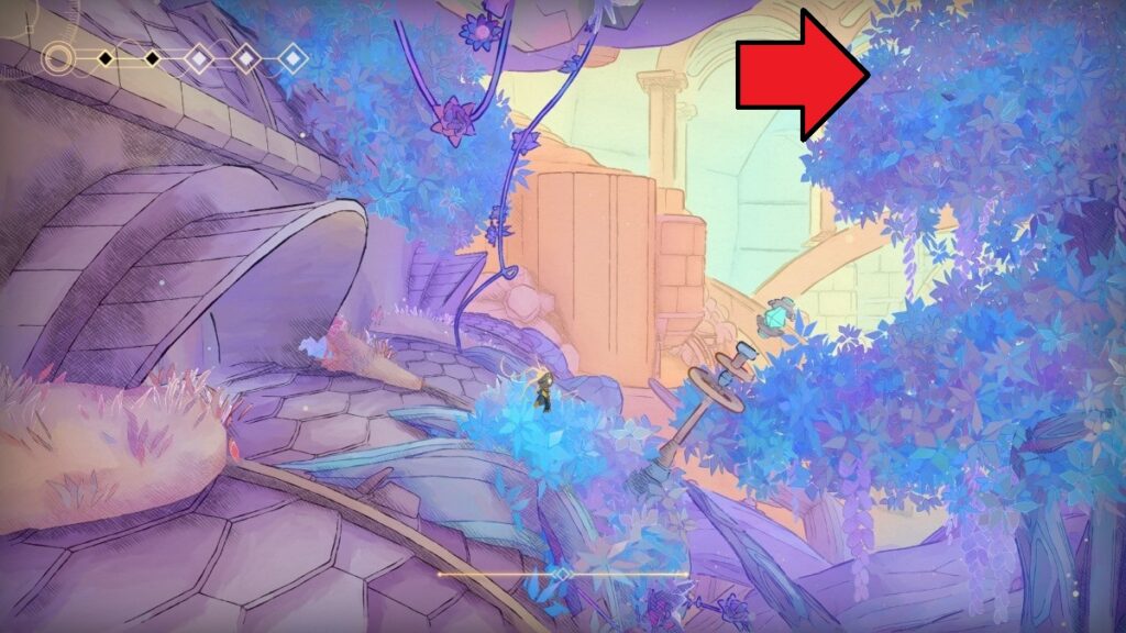 - 左下に「古びたコア」右の花を壊すとショートカット開通。