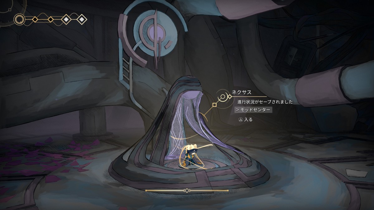 - 道なりに進むと拠点「ネクサス」。セーブやモッドの変更やワープが行えます。