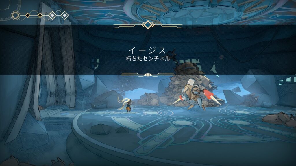 - 下に降りて、右に進むとボス「イージス」との戦闘。