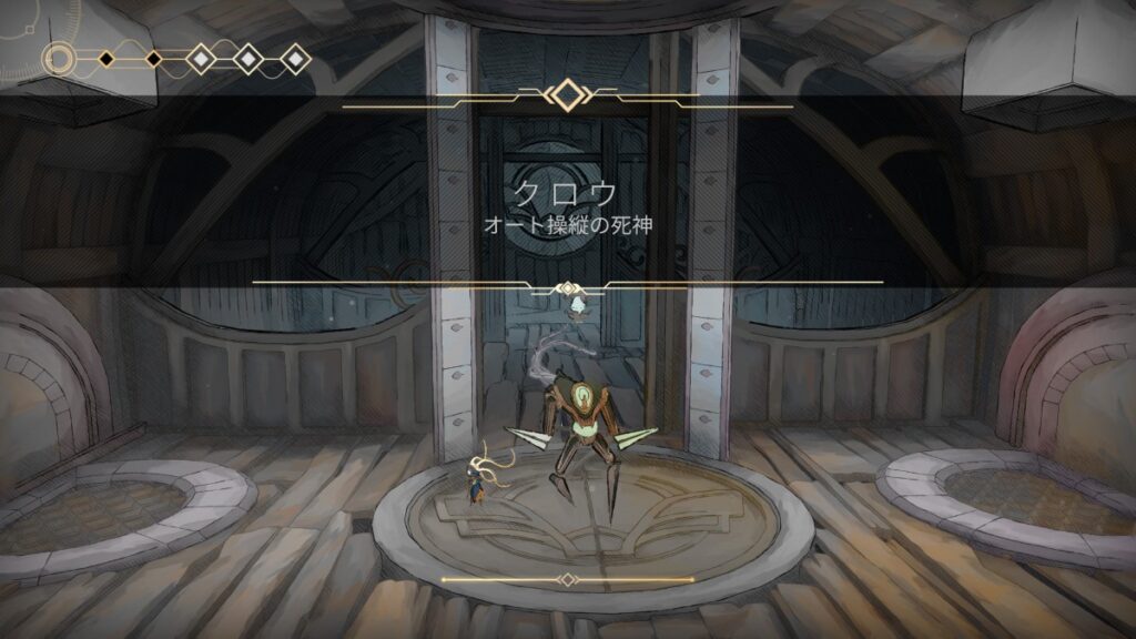 - 左に進み、かかしを叩くとボス「クロウ」との戦闘。
