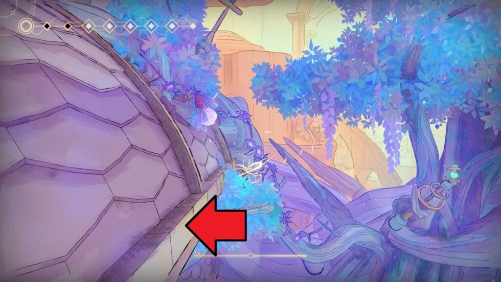 - 花の近くの屋根の上に登ったら、ストライダーを使用して、屋根の裏側にいくと「アスマの覚悟」