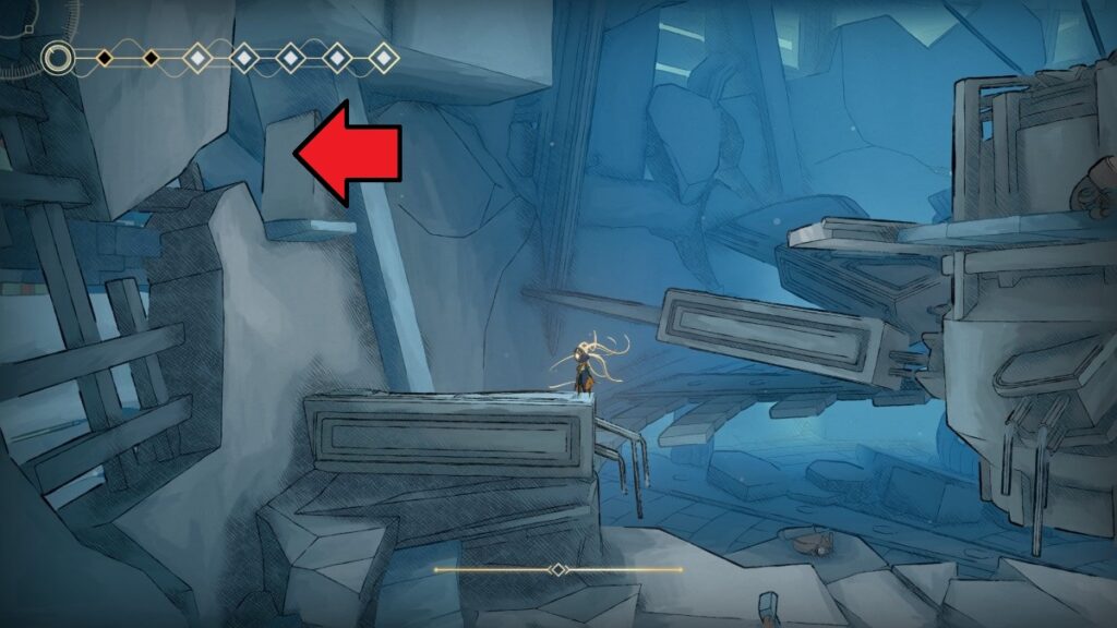 - 左に戻り、右上へと進み、倒れているNPCの上を破壊するとショートカットが開通