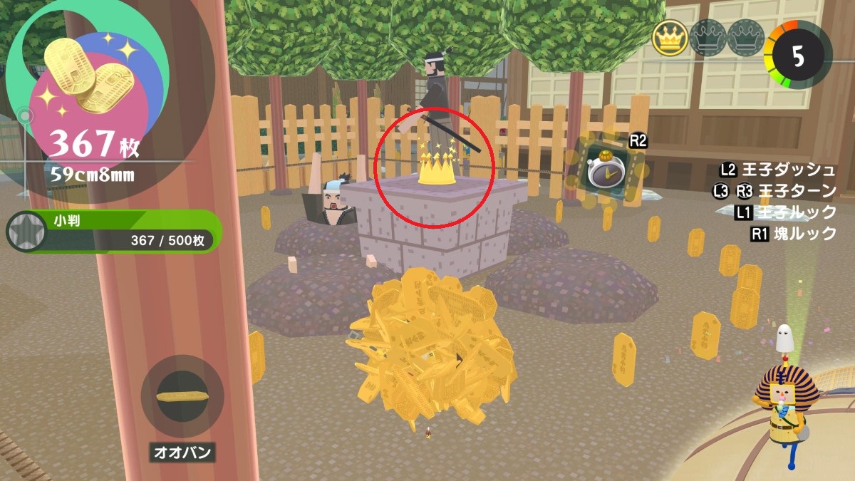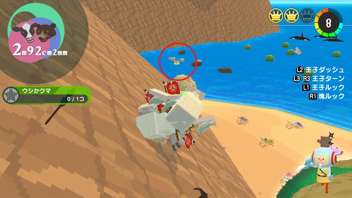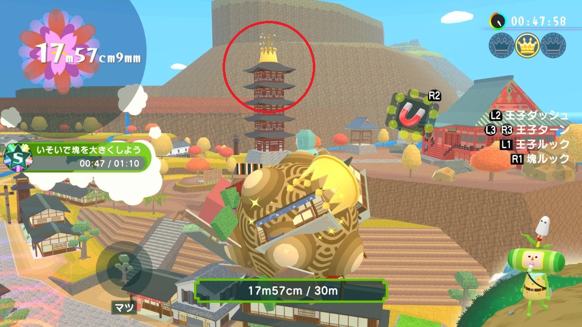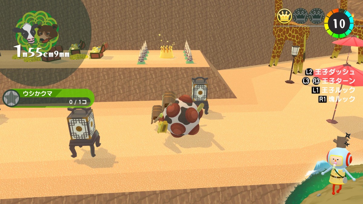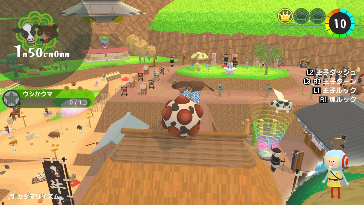 『ワンス・アポン・ア・塊魂』の「ムカシニホン」のとにかく大きく4~牛熊ヶ原で獲得できる、クラウン・メイツ・プレゼントの場所の一覧を紹介します。