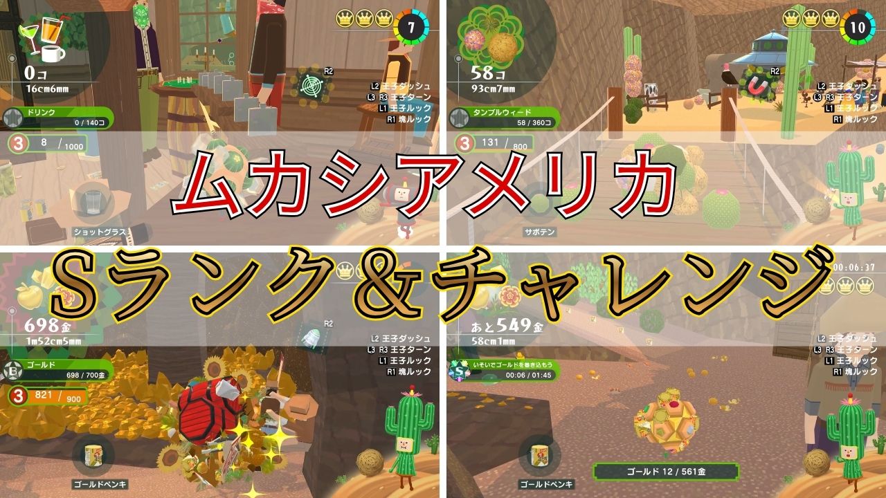 『ワンス・アポン・ア・塊魂』の「ムカシアメリカ」のドリンクをいっぱいいそいでゴールドをのSランクとチャレンジ達成のアドバイス記事です。