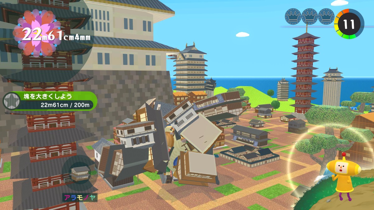 人や建物はもちろん、大きな城や山までも巻き込めてしまうのが塊魂らしさ。スケールの大きさがそのまま気持ち良さにつながっています。