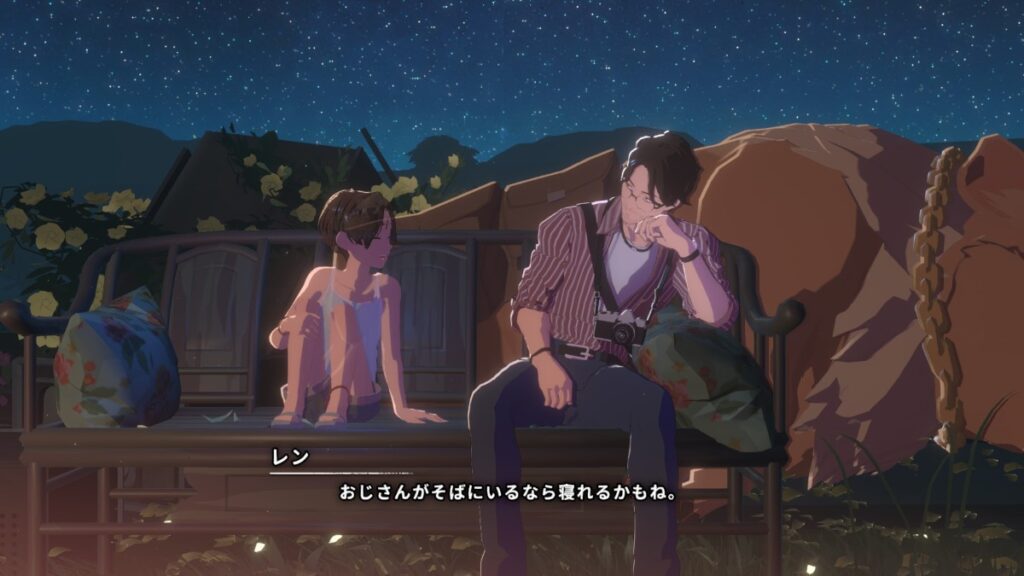 覇気を失った中年男性のユージンですが、レンのことを気遣うその眼差しは、どこまでも誠実です。レンもまた、ユージンを「おじさん」と呼びつつも、旅を通じて少しずつ信頼を寄せ、心を許していきます。