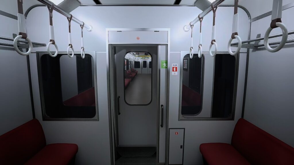 真っ暗な車両に入ったら、車内を探索して正解のドアを探しましょう。人がいないドアが正解なのです。そのドアを開くと先に進めます。