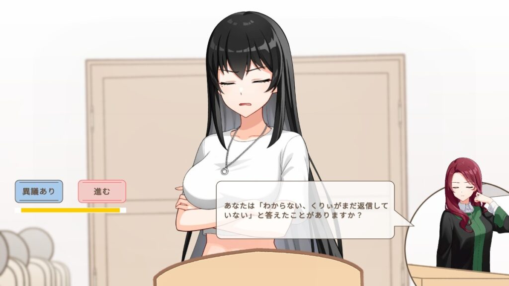 裁判パートにもペナルティがなく、何度間違えてもゲームオーバーにならないので、推理に自信がなくても最後までストレスなく遊びやすい構造でした。